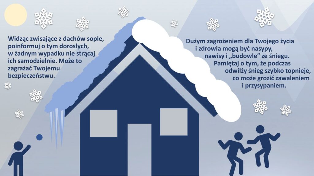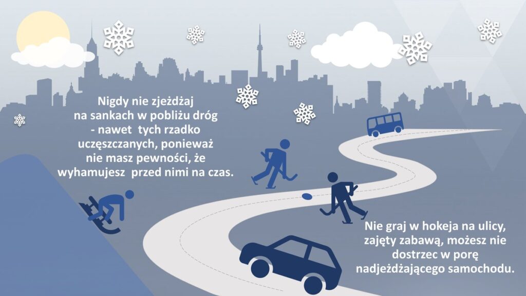 - Na sankach zjeżdżaj zawsze z dala od drogi i ruchu samochodowego.