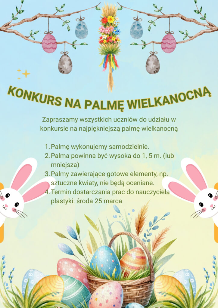 Zapraszamy wszystkich uczniów do udziału w konkursie na najpiękniejszą palmę wielkanocną.